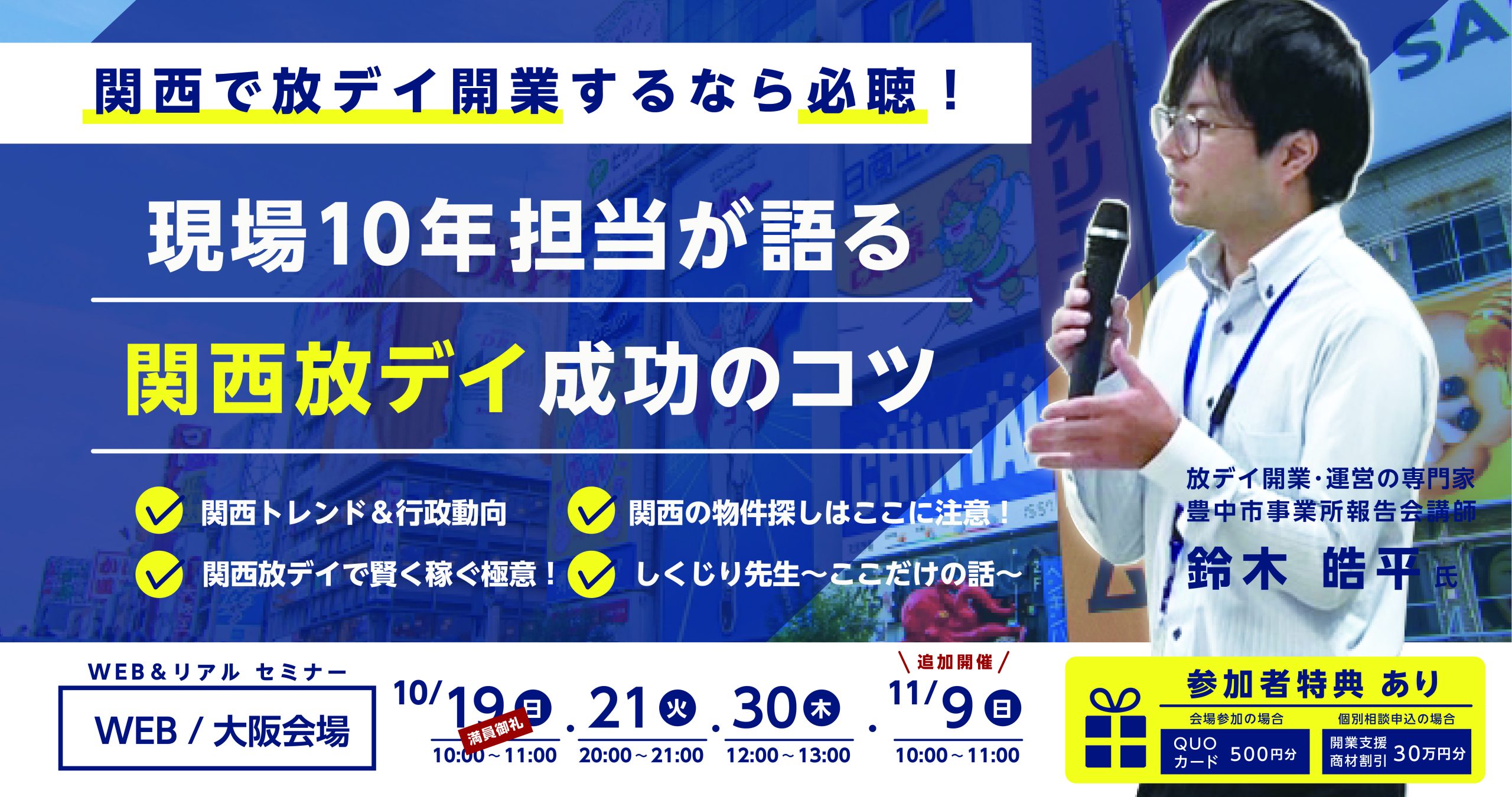 関西地区で児童発達支援・放課後等デイサービスの開業を検討している方は必見! この度、株式会社大阪支店にて、関西地区向けの内容で特別講師を招いた無料セミナーを開催しま […]