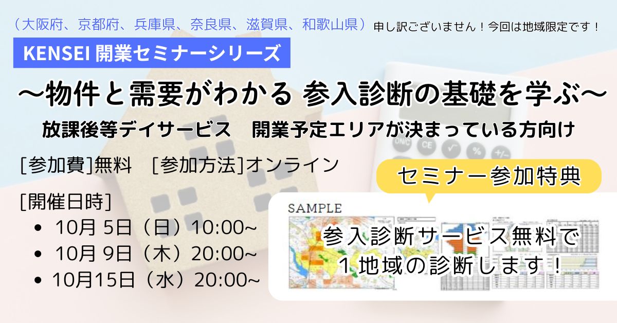 近畿二府四県で放課後等デイサービス開業を検討している方を対象に、「物件選び」と「参入診断」をテーマにしたWEB勉強会を開催します。 参加対象 「以下の地域で開業ご検討の方」が対象となります。 […]