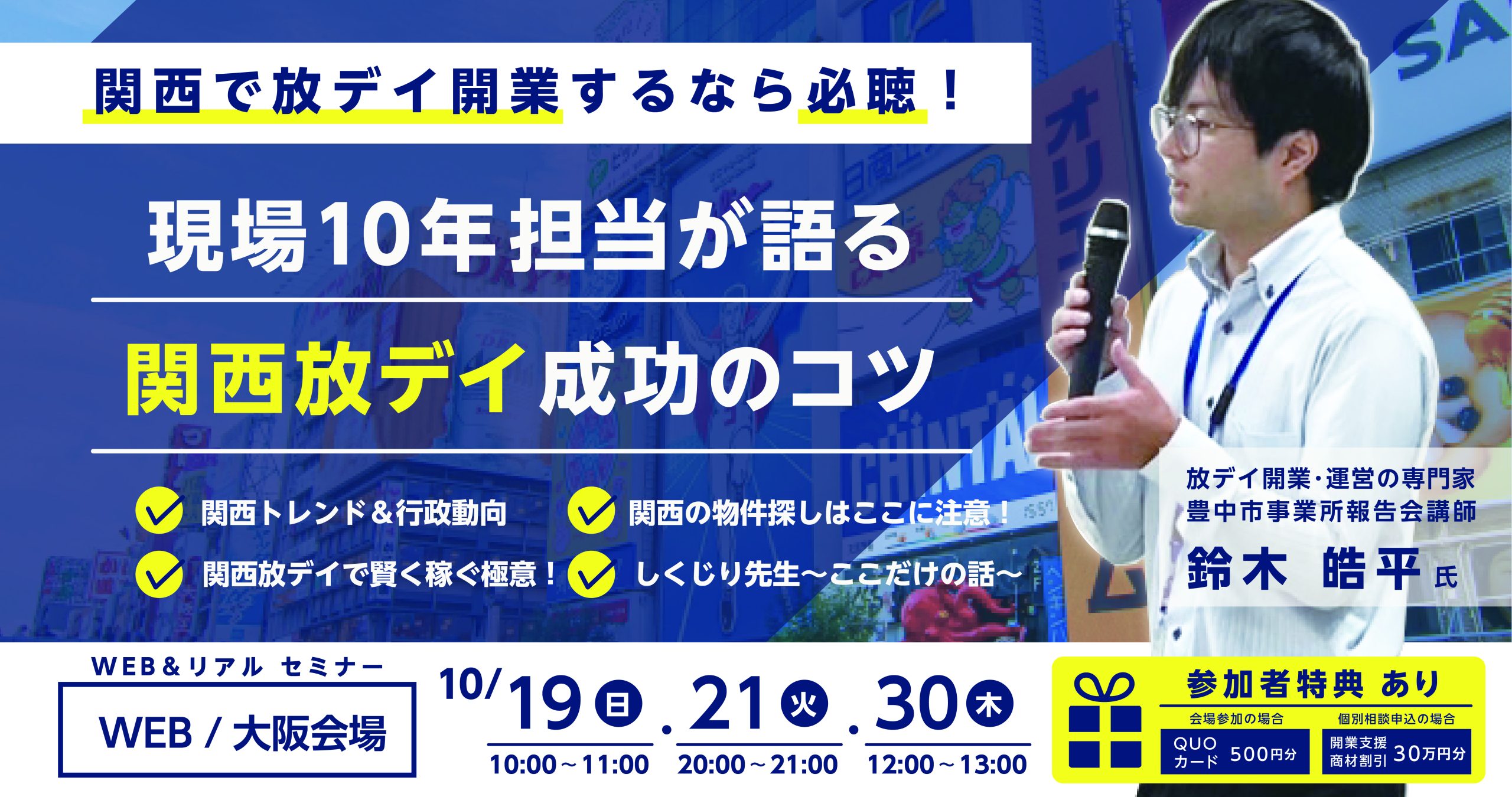 関西地区で児童発達支援・放課後等デイサービスの開業を検討している方は必見! この度、株式会社大阪支店にて、関西地区向けの内容で特別講師を招いた無料セミナーを開催しま […]