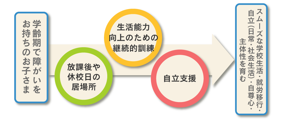| 放課後等デイサービス | 障がいのある就学児(小学生~高校生) |