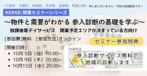 関西地区で児童発達支援・放課後等デイサービスの開業を検討している方は必見! この度、株式会社大阪支店にて、関西地区向けの内容で特別講師を招いた無料セミナーを開催しま […]